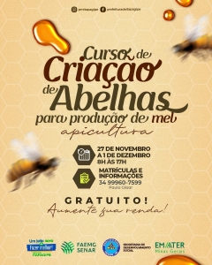 Faça sua matrícula no curso de criação de abelhas para produção de mel! É gratuito!