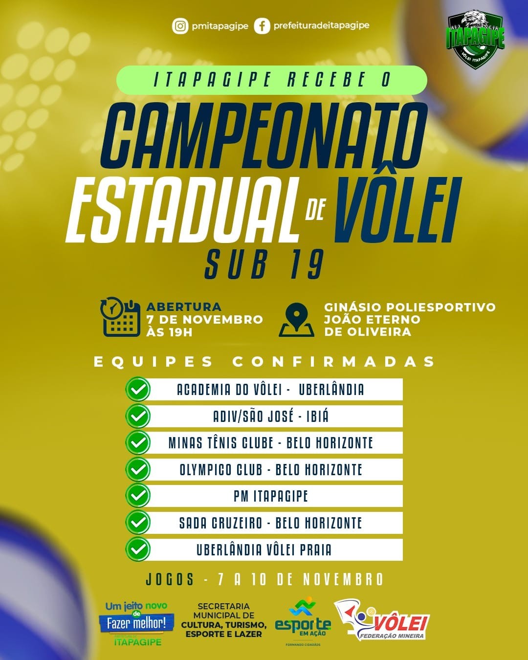 Aproveitamos para agradecer a todos os torcedores, apoiadores e patrocinadores que além de fazerem com que o projeto de Itapagipe evolua a cada ano, também contribuem para o voleibol do estado de Minas Gerais.
