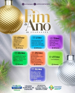 Na véspera do aniversário de Itapagipe, dia 26 de dezembro, teremos show com Junin & Aurélio, Banda Evolução, apresentação de artistas locais e encontro de som automotivo.
