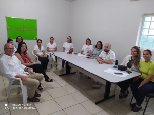 A Secretária Maria Elizia, enfermeiros, Débora Assis, Evelin, Vânia e a Secretária de Educação Lenira Carneiro estiveram presentes na reunião.
