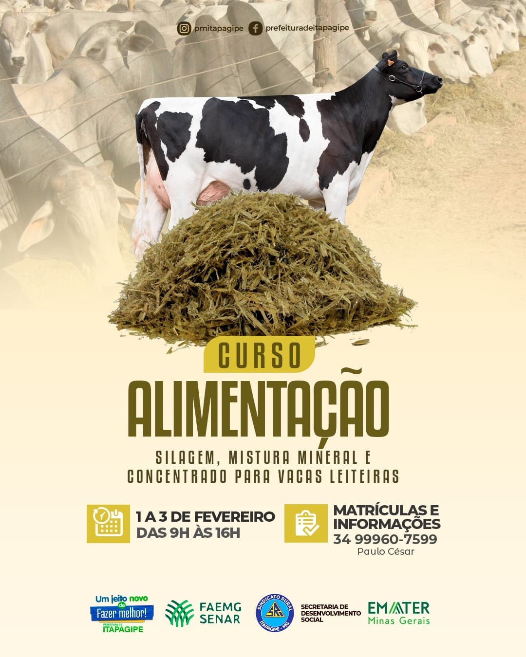 Alimentação (silagem, mistura mineral e concentrado para vacas leiteiras).