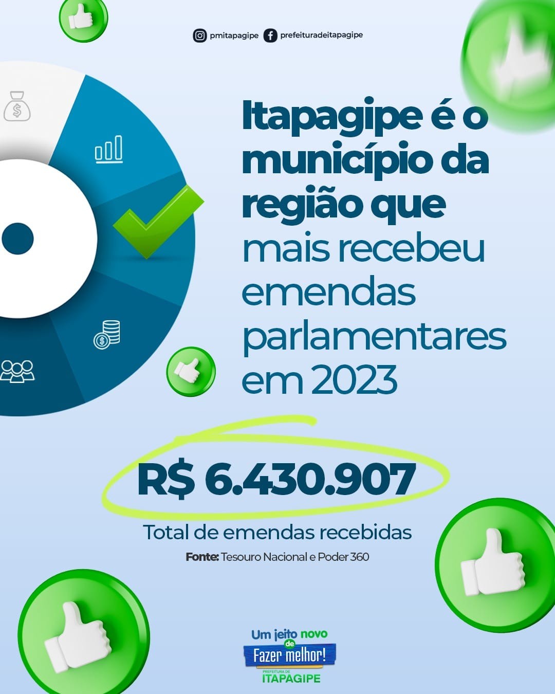Com muito diálogo e uma política aberta a todos os partidos, segundo dados do tesouro nacional, Itapagipe foi o município que mais recebeu emendas parlamentares em 2023 na região.