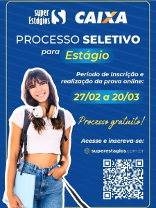 A Caixa Econômica Federal informa que estão abertas as inscrições para o Processo Seletivo de Estagiários com vagas destinadas ao município de Itapagipe.