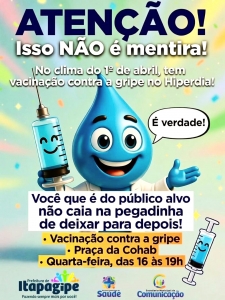 No clima do 1º de abril, a gente vem te contar uma verdade muito importante: tem vacinação contra a gripe no Hiperdia!