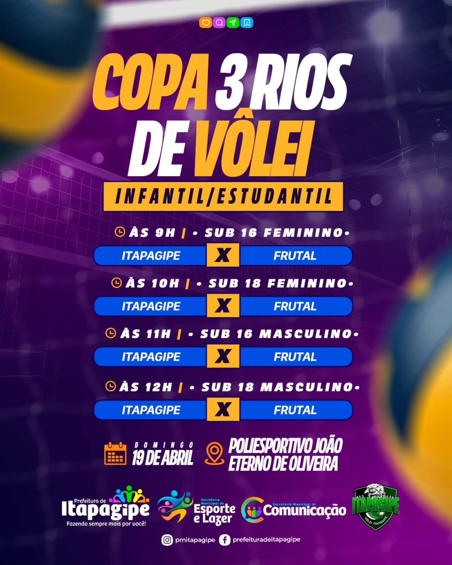 A Copa 3 Rios de Vôlei – Infantil/Estudantil promete movimentar o domingão ensolarado em Itapagipe com muita energia, talento e espírito esportivo